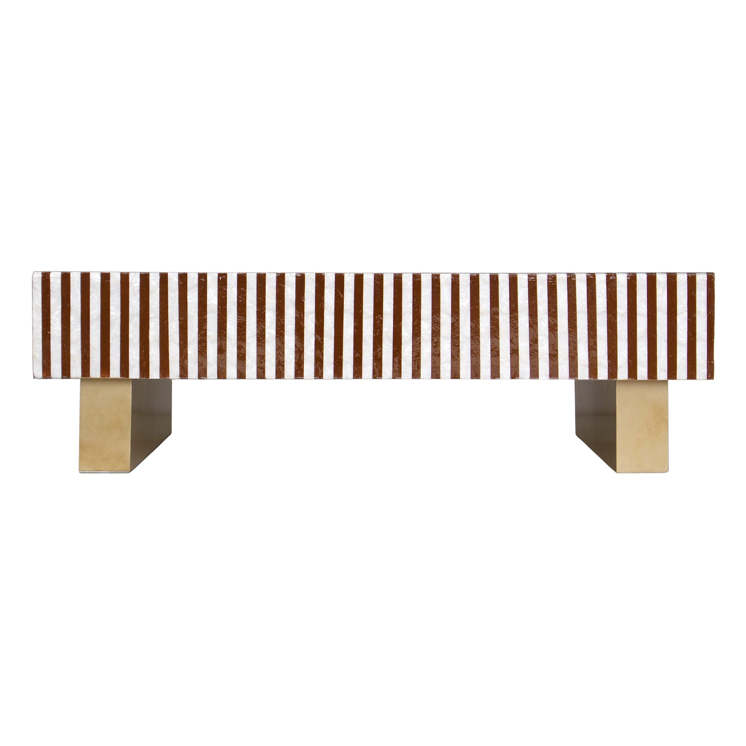 Warm, neutral tones complement the iridescent inlay, making this piece versatile for modern, coastal, or luxe interiors.