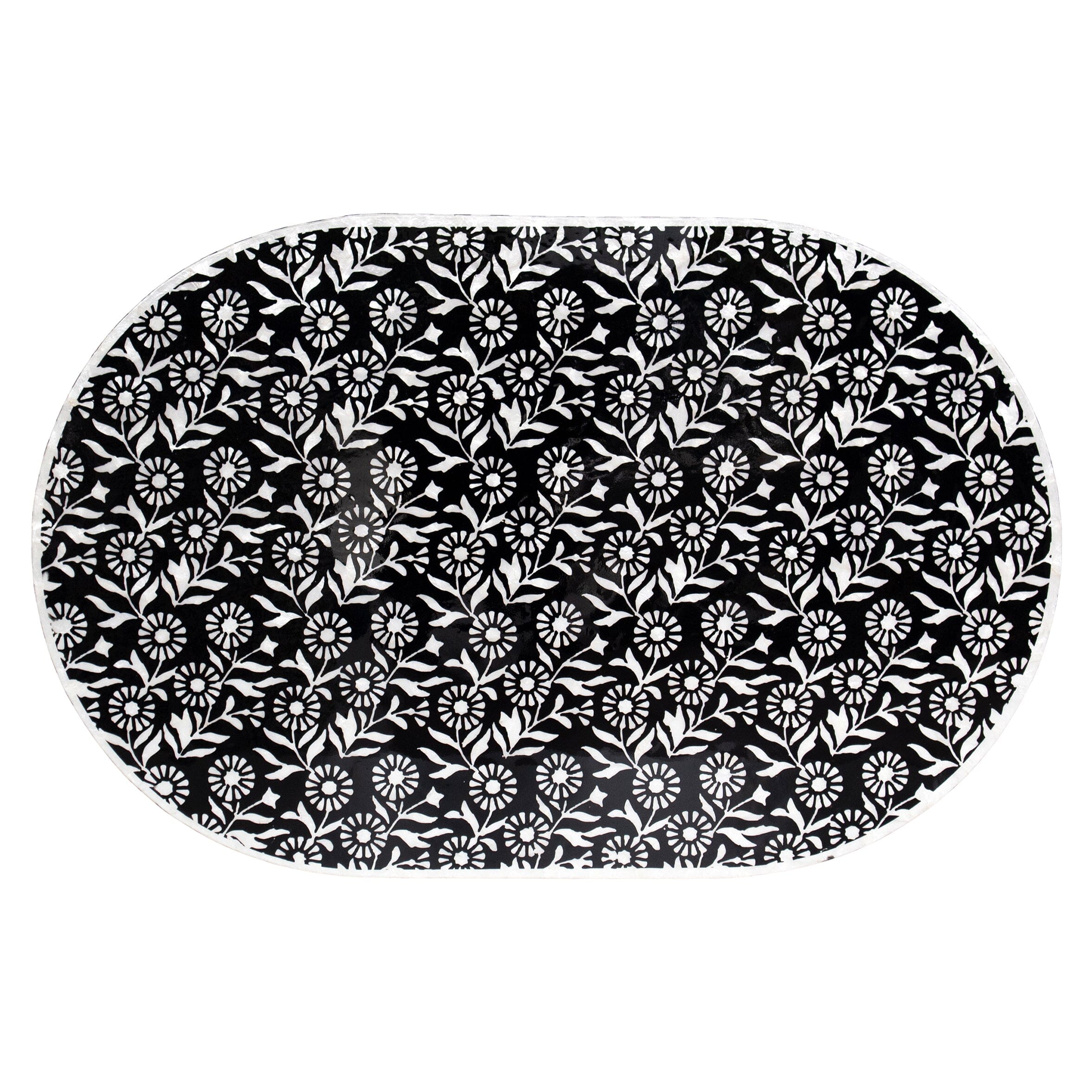 •   🌼 Timeless Floral Inlay: The black tabletop blooms with a delicate white floral motif, meticulously hand-laid in mother of pearl. Each petal reflects the artisan’s touch, creating a surface that’s both serene and striking.