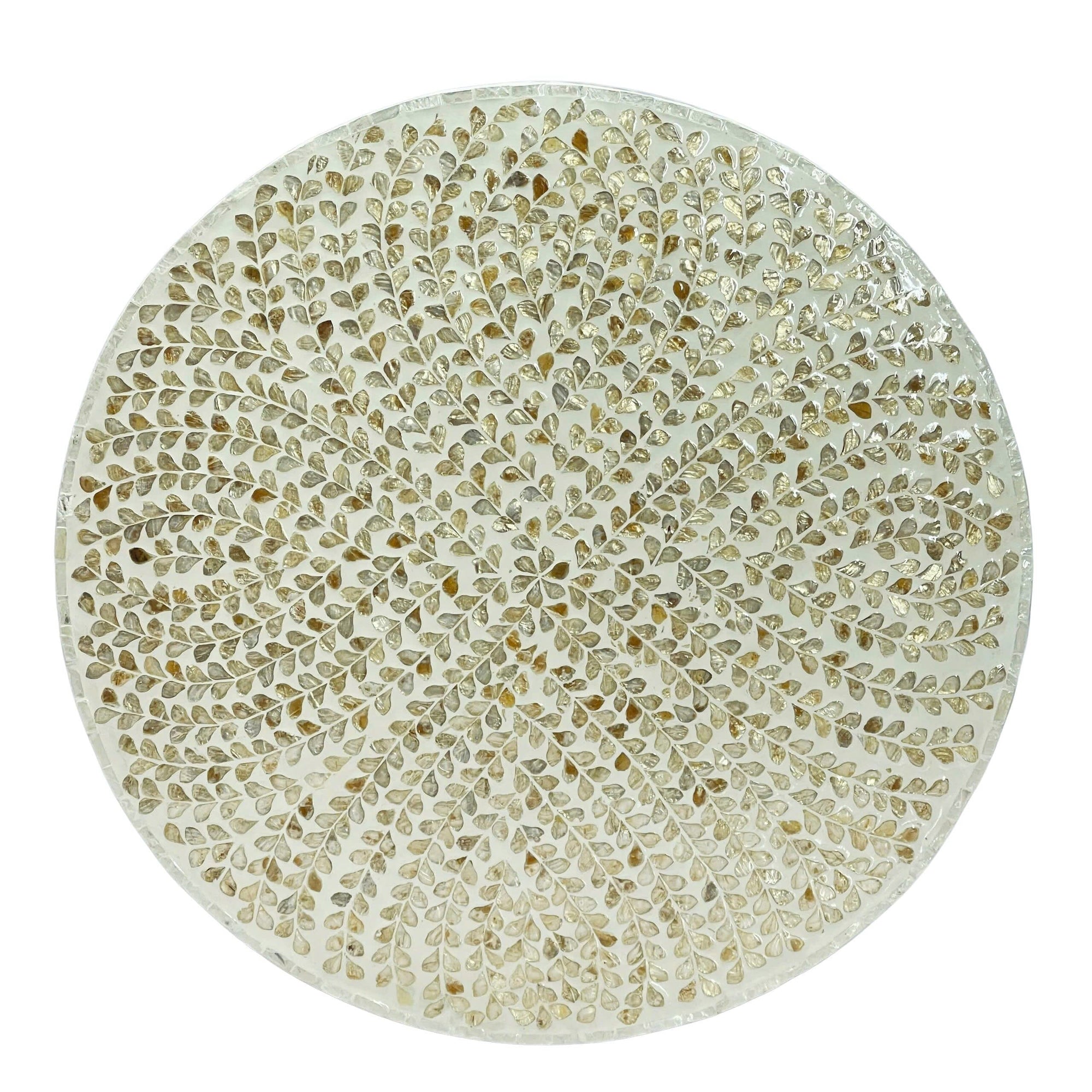 Our hand-crafted Mother of Pearl furniture is expertly crafted, imparting each piece with a unique character of its own. Such pieces may bear small markings, smudges, glue spots, and other subtle details — all of which contribute to its one-of-a-kind look. Patterns may differ from those shown in its original photos. Note that these details are not faults and are instead part of the charm of such hand-crafted items. To maintain these pieces, they should not be used outdoors, nor should cleaning chemicals be used. Instead, use a lint-free cloth, and also make sure not to place these pieces near heat or sunlight, as this may cause fading.